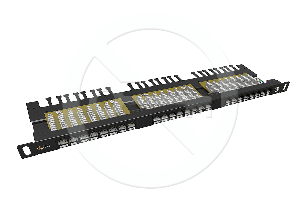 Patch panely Solarix s označením SX24HD-6-UTP-BK jsou vysokohustotní 19" patch panely s výškou 0,5U, které jsou osazeny 24 porty RJ45 a duální IDC svorkovnicí 110/Krone. U těchto panelů je důraz kladen na maximální úsporu místa v rozvaděči, kdy do výšky 1U lze jednoduše nainstalovat až 48 portů. Tyto high-density panely Solarix jsou dostupné ve stíněném i nestíněném provedení a bez problémů splňují požadavky definované v mezinárodních standardech ANSI/TIA 568, ISO/IEC 11801 a EN 50173 včetně všech nejnovějších dodatků pro kategorii 6 a třídu vedení Class E. Panely jsou navrhnuty tak, aby byly robustní, spolehlivé, poskytovaly maximální výkon a umožňovaly jednoduchou instalaci. Součástí těla těchto panelů je vyvazovací lišta, která umožňuje pevné uchycení a přehledné uspořádání datového kabelu. Barva nestíněného high-density patch panelu Solarix je černá.