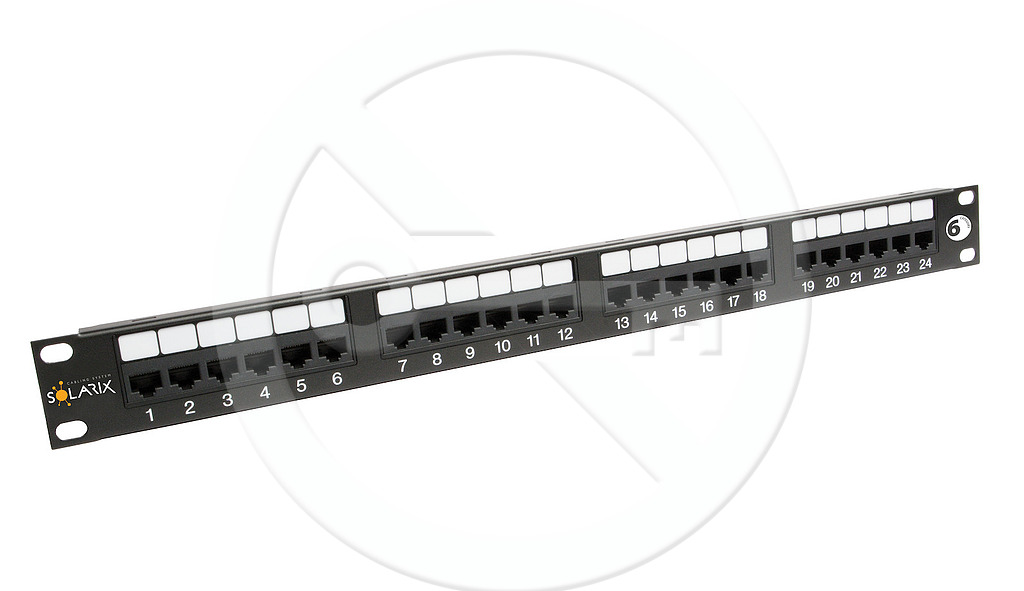 Patch panel Solarix s označením SX24-6-UTP-BK je vysoce kvalitní panel kategorie 6, který splňuje požadavky na komponenty této kategorie definované ve standardech ANSI/TIA 568, ISO/IEC 11801 a EN 50173 pro kategorii 6 a třídu vedení Class E, včetně všech nejnovějších dodatků. Tento panel je testován pro šířku pásma až do 350 MHz, čímž převyšuje požadavky specifikované pro kategorii 6. Panel je dodáván ve verzi s 24 porty RJ45 a je osazen moduly s duální IDC svorkovnicí 110/Krone. Kontakty jsou na svorkovnici z důvodu snadného zakončení datového kabelu označeny jednotlivými barvami podle typu zapojení a to buď podle standardu T568A nebo T568B. Panel SX24-6-UTP-BK patří do skupiny komponentů systému Solarix - kategorie 6 a stejně jako všechny komponenty v této produktové řadě je vyroben tak, aby poskytoval maximální životnost, vynikající výkon, spolehlivost a především jednoduchou instalaci. Barva Solarix patch panelu kategorie 6 je černá; velikost v datovém rozvaděči je 1U.