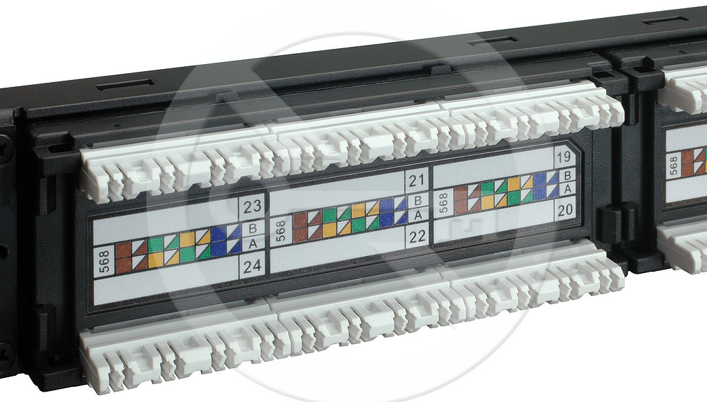 Nestíněný patch panel CAT6 24 portů testováný do 350 MHz, černý.