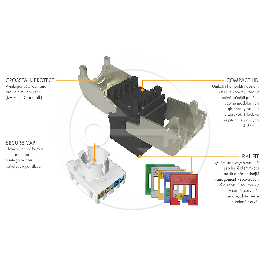 Detail produktuModul French style Solarix 22,5 x 45mm pro 1 keystone úhlový bílý...