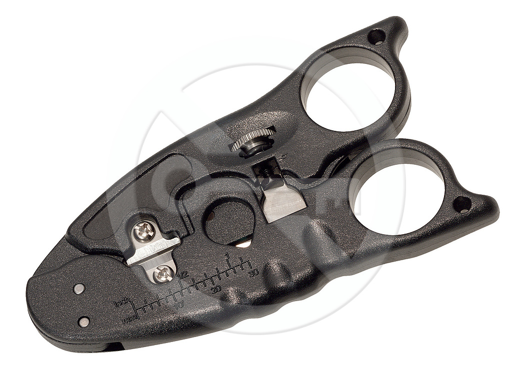 • jednoduše nastavitelný ořezávač na instalační kabely do průměru 12.7 mm s funkcí odstříhnutí kabelu a s nerezovými břity