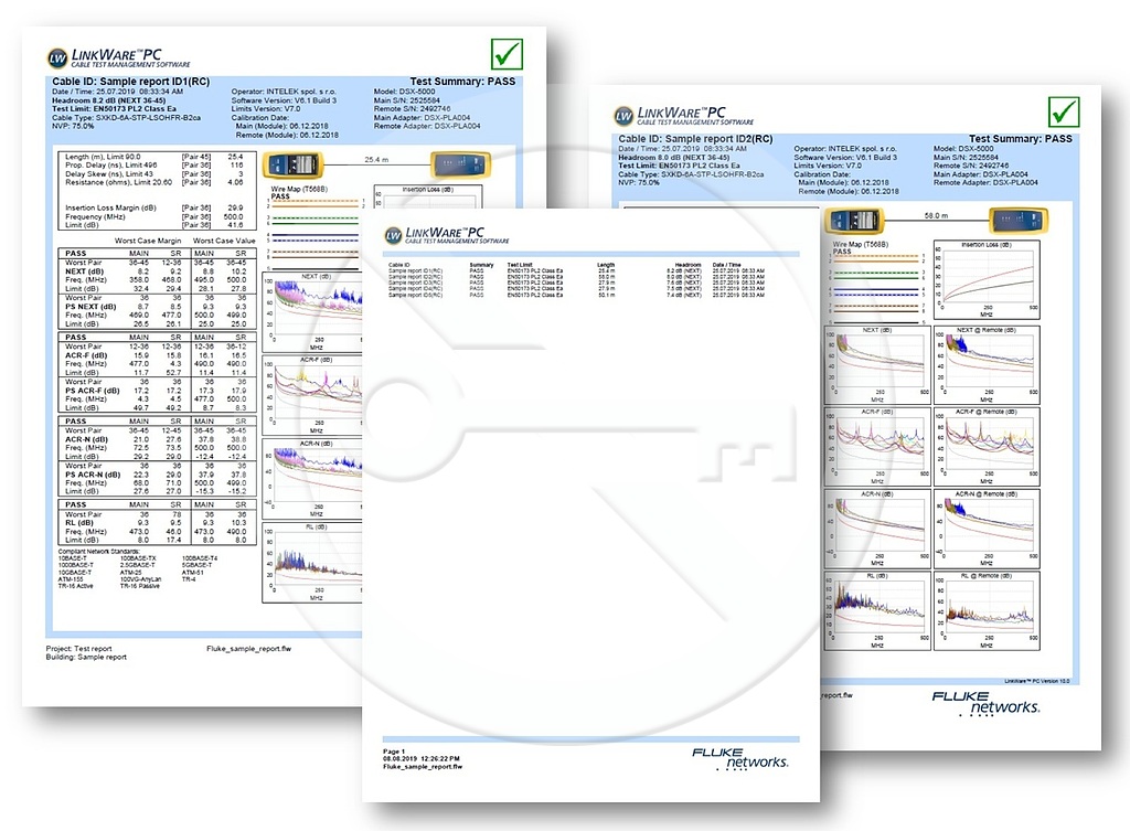 • Odolný přístroj s kovovými koncovkami RJ45 kategorie 6A pro měření v topologii Permanent Link,