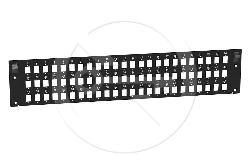 Čelo optické vany 2U pro 72 SC simplex RAL9003 vhodné pro optické vany FOS-2U-B/G obj, č, 86010305 a 86010307. Čelo SC simplex lze použít pro LC duplexní optické adaptéry.