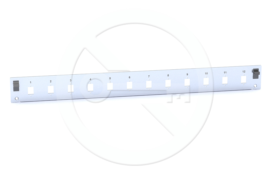 Čelo eloxovaný hliník vhodné pro optickou vanu 1U, FOS-1U-ALU obj. číslo 86010306. Čelo SC simplex lze použít pro LC duplexní optické adaptéry.
