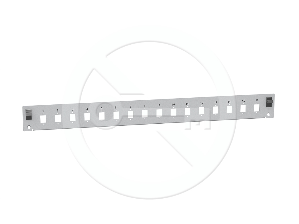 Čelo optické vany 1U pro 16SC simplex/LC duplex/E2000 RAL7035 s montážními otvory v2 FP2-1U-16SCS-G - Solarix - Optické vany a čela