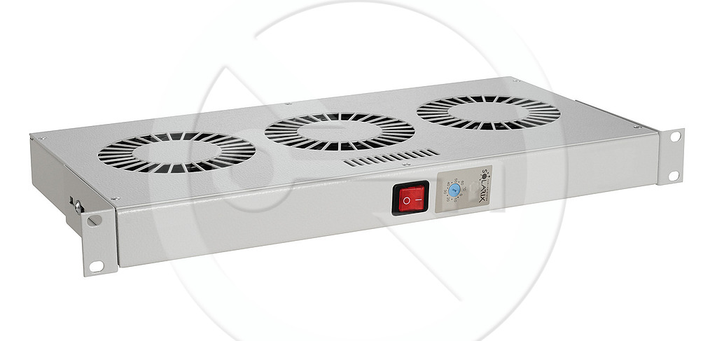 Produkt Chladící jednotka 19" 1U 3 ventilátory s bimetalovým termostatem RAL 7035 do 19" lišt VJ19-3-T-G - Solarix - 19" příslušenství
