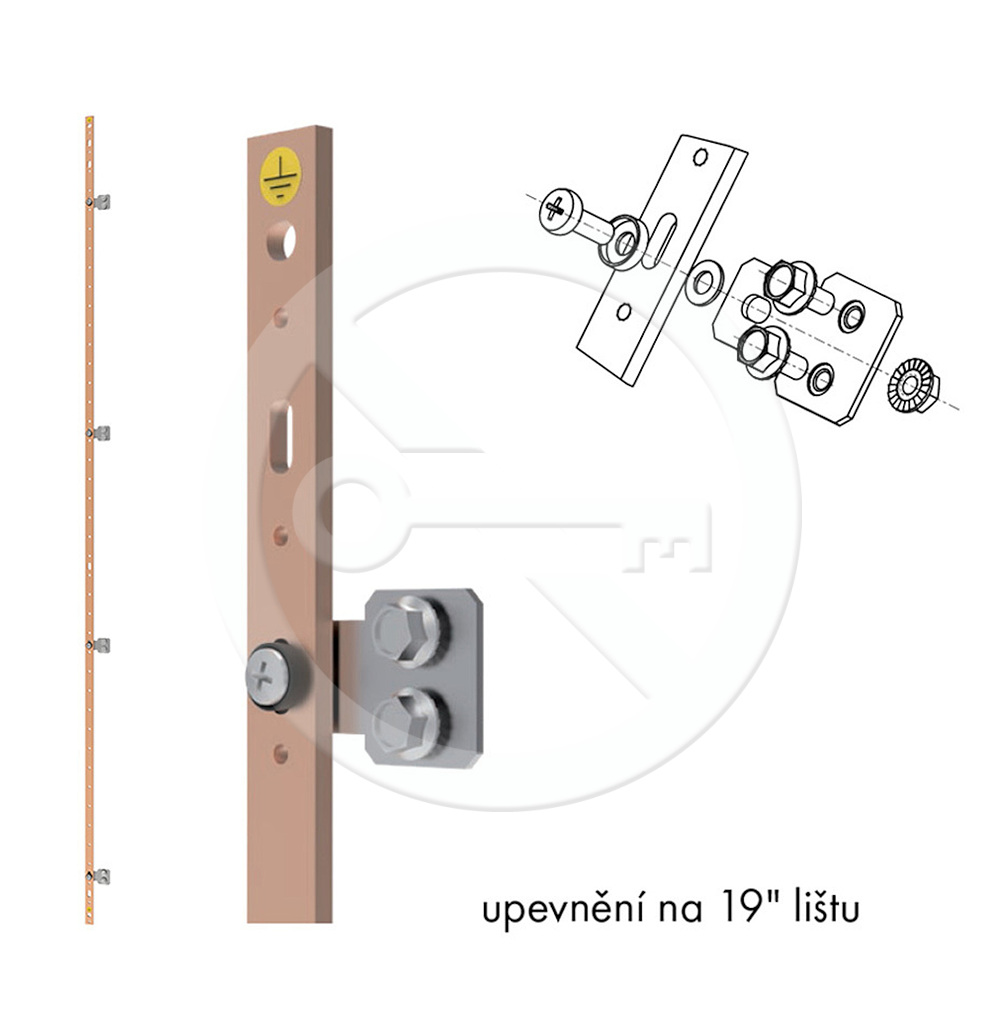 Měděná vertikální zemnicí lišta pro stojanové rozvaděče LC-50