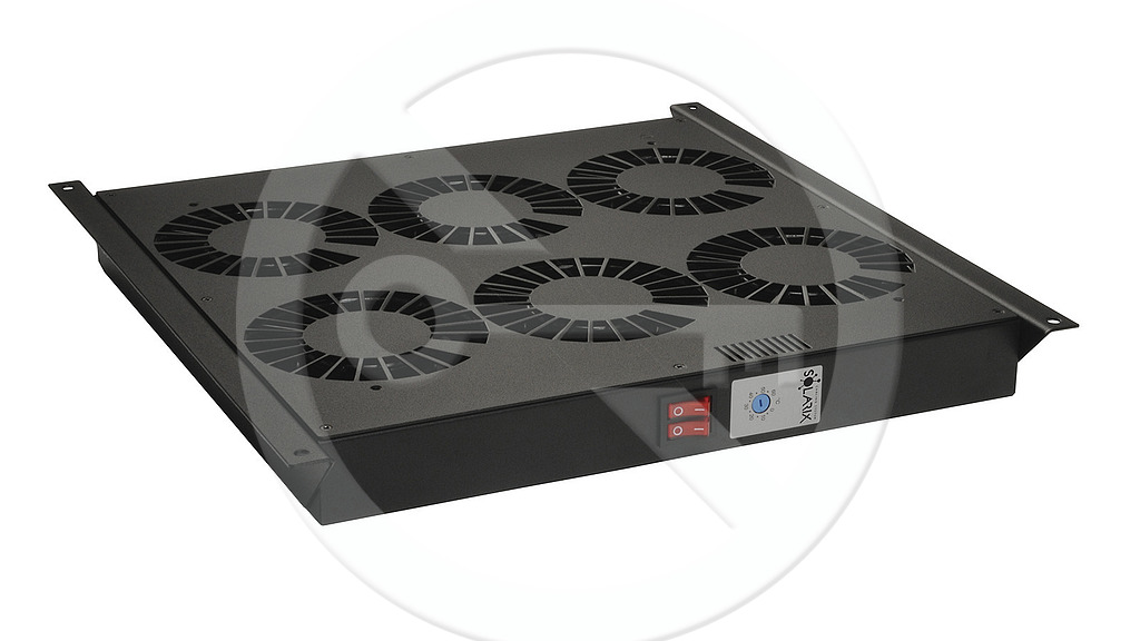 Ventilační jednotka tvoří kompaktní celek, umožňující montáž do všech stojanových rozvaděčových skříní typu LC. Z přední strany je osazena dvousekčním kolébkovým vypínačem, signalizujícím zapnutý stav červeným prosvícením a ovládací prvek termostatu pro