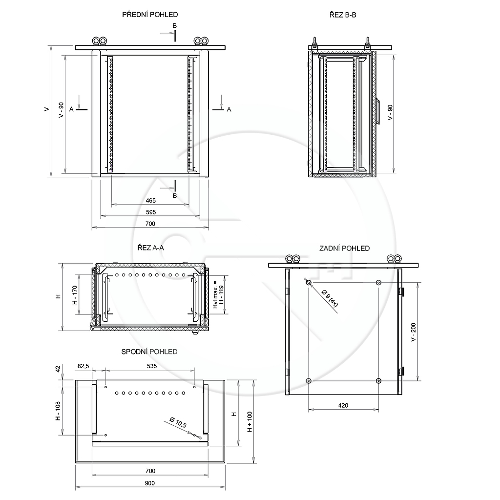 • 12x kabelové průchodky PG-16 ve dně rozvaděče