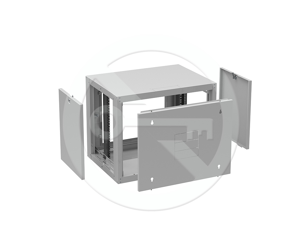 Rozvaděč nástěnný GrandN DUO 12U 450mm, dveře plech, RAL 7035, GrandND-12U-645-21-G - Solarix - Nástěnné 19"