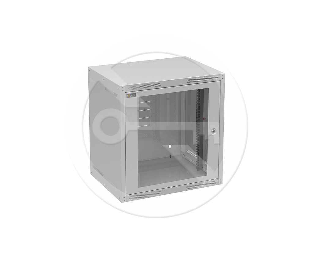 Rozvaděč nástěnný GrandN 12U 450mm, dveře sklo, RAL 7035, GrandN-12U-645-11-G - Solarix - Nástěnné 19"