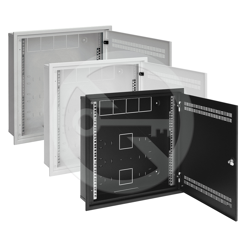 Rozvaděč SOHO LC-18 do zdi s lištami 2U, 4U a 11U, 550x550 šedá RAL7035 s rámečkem k zazdění