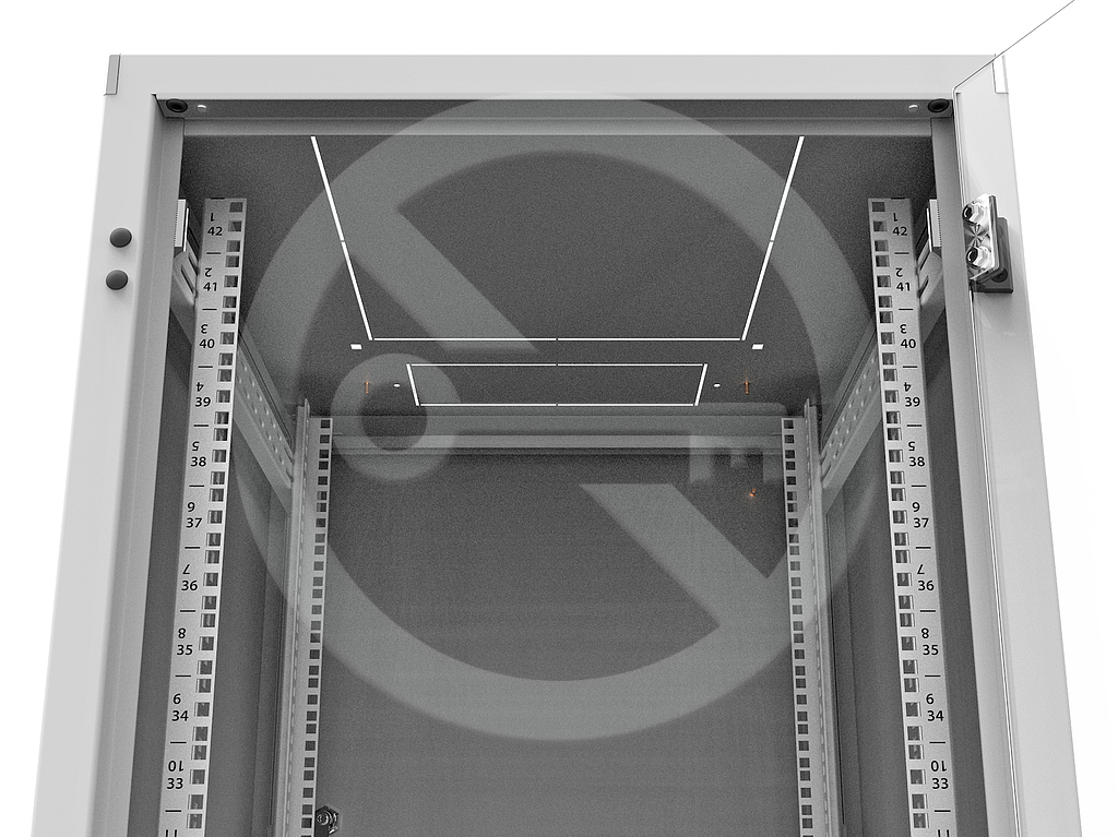 Rozvaděč obsahuje dva páry 19" vertikálních lišt s potiskem pro identifikaci výšky umístění montovaných zařízení. Konstrukce rozvaděče umožňuje měnit polohu vertikálních lišt ve směru hloubky rozvaděče.