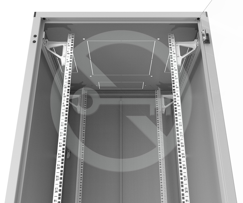 Rozvaděč obsahuje dva páry 19" vertikálních lišt s potiskem pro identifikaci výšky umístění montovaných zařízení. Konstrukce rozvaděče umožňuje měnit polohu vertikálních lišt ve směru hloubky rozvaděče.