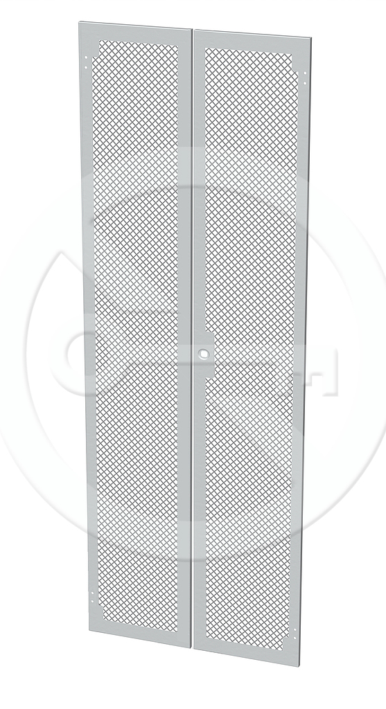 Dveře plechové s perforací LC-50, 45U, šířky 800, dvoukřídlé RAL7035, 1-b zámek - Solarix - Příslušenství