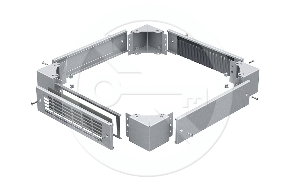 – sada rohových dílů a panely podstavce obsahují vždy montážní materiál k sestavení a k montáži na rozvaděč