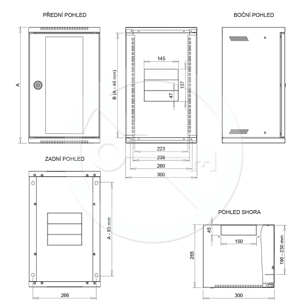 • v zadní části 4 otvory o průměru 9 mm pro uchycení na stěnu
