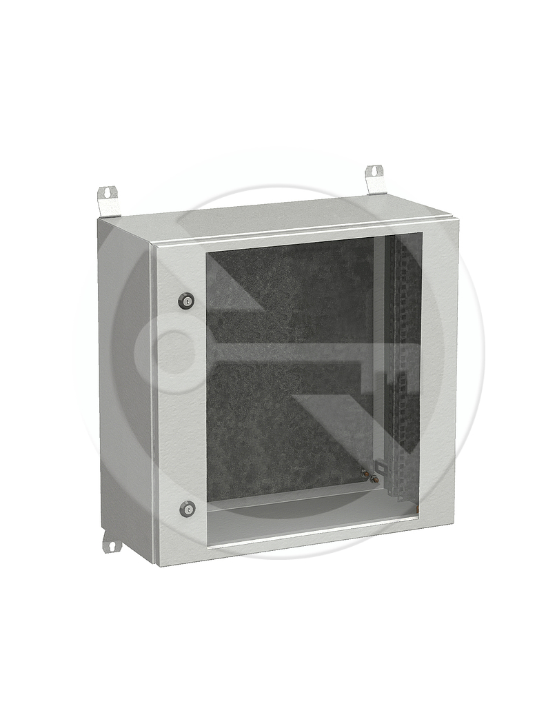 Rozvaděč tvoří samonosná svařovaná konstrukce z plechu tloušťky 1,5 mm, která je uzpůsobená pro připevnění na stěnu pomocí čtveřice dodávaných závěsů. Zajištění dveří proti otevření je provedeno pomocí jednobodových cylindrických zámků, nebo pomocí tříbodového zámku, výklopné kliky s vložkou. Z vnitřní strany dveří jsou přivařeny dva vertikální perforované rámečky, které zvyšují tuhost a zároveň slouží k vyvazování a uchycení výstroje skříně. Zemnicí propojení skříně je provedeno moderní technologií kapacitního navařování pokovenými šrouby. Těsnění dveří je provedeno technologií litého těsnění. Přístroje lze do skříně montovat na 19" lišty s pozinkovaného plechu. V zadní části rozvaděče je také upevněn montážní panel z pozinkovaného plechu síly 2 mm. 19" lišty i montážní panel lze nastavit plynule do požadované hloubky v rozvaděči.