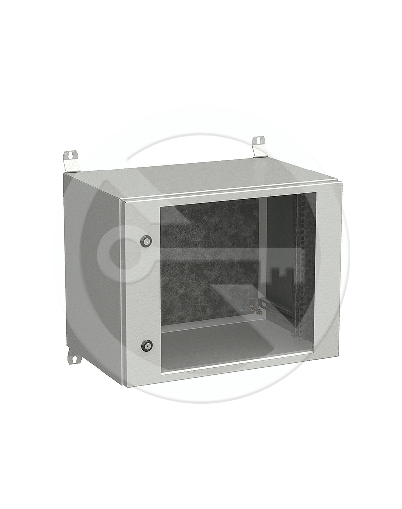 Rozvaděč tvoří samonosná svařovaná konstrukce z plechu tloušťky 1,5 mm, která je uzpůsobená pro připevnění na stěnu pomocí čtveřice dodávaných závěsů. Zajištění dveří proti otevření je provedeno pomocí jednobodových cylindrických zámků, nebo pomocí tříbodového zámku, výklopné kliky s vložkou. Z vnitřní strany dveří jsou přivařeny dva vertikální perforované rámečky, které zvyšují tuhost a zároveň slouží k vyvazování a uchycení výstroje skříně. Zemnicí propojení skříně je provedeno moderní technologií kapacitního navařování pokovenými šrouby. Těsnění dveří je provedeno technologií litého těsnění. Přístroje lze do skříně montovat na 19" lišty s pozinkovaného plechu. V zadní části rozvaděče je také upevněn montážní panel z pozinkovaného plechu síly 2 mm. 19" lišty i montážní panel lze nastavit plynule do požadované hloubky v rozvaděči.