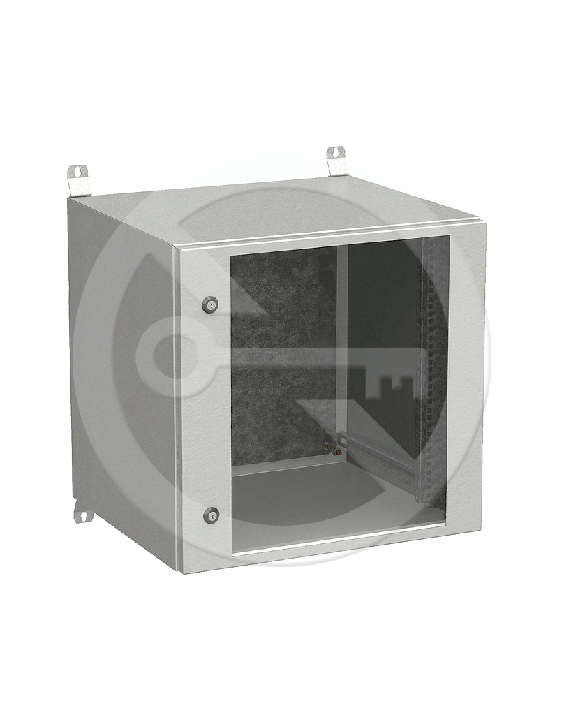 Rozvaděč tvoří samonosná svařovaná konstrukce z plechu tloušťky 1,5 mm, která je uzpůsobená pro připevnění na stěnu pomocí čtveřice dodávaných závěsů. Zajištění dveří proti otevření je provedeno pomocí jednobodových cylindrických zámků, nebo pomocí tříbodového zámku, výklopné kliky s vložkou. Z vnitřní strany dveří jsou přivařeny dva vertikální perforované rámečky, které zvyšují tuhost a zároveň slouží k vyvazování a uchycení výstroje skříně. Zemnicí propojení skříně je provedeno moderní technologií kapacitního navařování pokovenými šrouby. Těsnění dveří je provedeno technologií litého těsnění. Přístroje lze do skříně montovat na 19" lišty s pozinkovaného plechu. V zadní části rozvaděče je také upevněn montážní panel z pozinkovaného plechu síly 2 mm. 19" lišty i montážní panel lze nastavit plynule do požadované hloubky v rozvaděči.