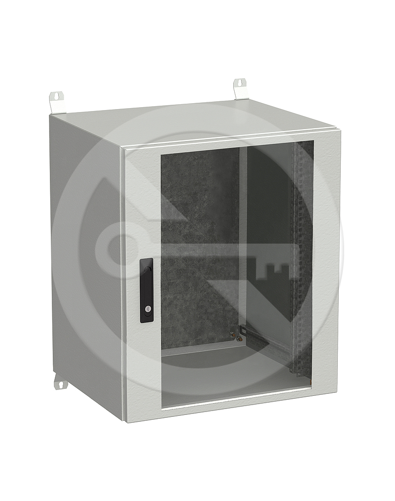 Rozvaděč tvoří samonosná svařovaná konstrukce z plechu tloušťky 1,5 mm, která je uzpůsobená pro připevnění na stěnu pomocí čtveřice dodávaných závěsů. Zajištění dveří proti otevření je provedeno pomocí jednobodových cylindrických zámků, nebo pomocí tříbodového zámku, výklopné kliky s vložkou. Z vnitřní strany dveří jsou přivařeny dva vertikální perforované rámečky, které zvyšují tuhost a zároveň slouží k vyvazování a uchycení výstroje skříně. Zemnicí propojení skříně je provedeno moderní technologií kapacitního navařování pokovenými šrouby. Těsnění dveří je provedeno technologií litého těsnění. Přístroje lze do skříně montovat na 19" lišty s pozinkovaného plechu. V zadní části rozvaděče je také upevněn montážní panel z pozinkovaného plechu síly 2 mm. 19" lišty i montážní panel lze nastavit plynule do požadované hloubky v rozvaděči.