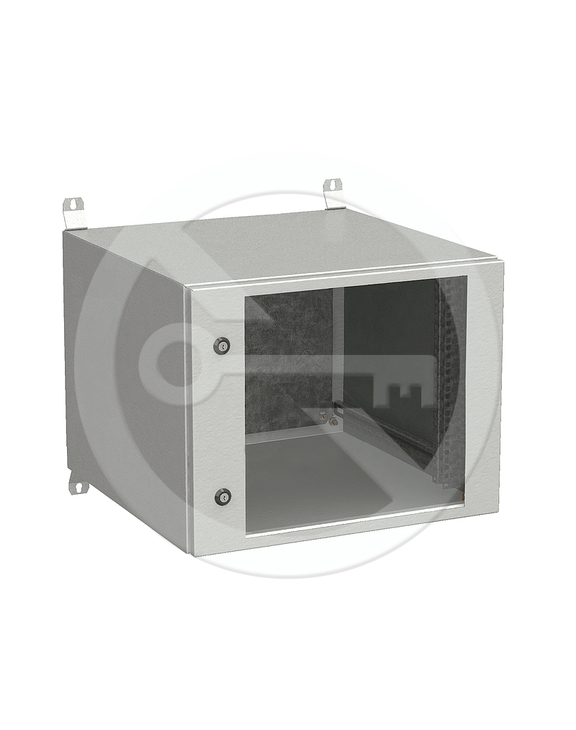 Rozvaděč tvoří samonosná svařovaná konstrukce z plechu tloušťky 1,5 mm, která je uzpůsobená pro připevnění na stěnu pomocí čtveřice dodávaných závěsů. Zajištění dveří proti otevření je provedeno pomocí jednobodových cylindrických zámků, nebo pomocí tříbodového zámku, výklopné kliky s vložkou. Z vnitřní strany dveří jsou přivařeny dva vertikální perforované rámečky, které zvyšují tuhost a zároveň slouží k vyvazování a uchycení výstroje skříně. Zemnicí propojení skříně je provedeno moderní technologií kapacitního navařování pokovenými šrouby. Těsnění dveří je provedeno technologií litého těsnění. Přístroje lze do skříně montovat na 19" lišty s pozinkovaného plechu. V zadní části rozvaděče je také upevněn montážní panel z pozinkovaného plechu síly 2 mm. 19" lišty i montážní panel lze nastavit plynule do požadované hloubky v rozvaděči.