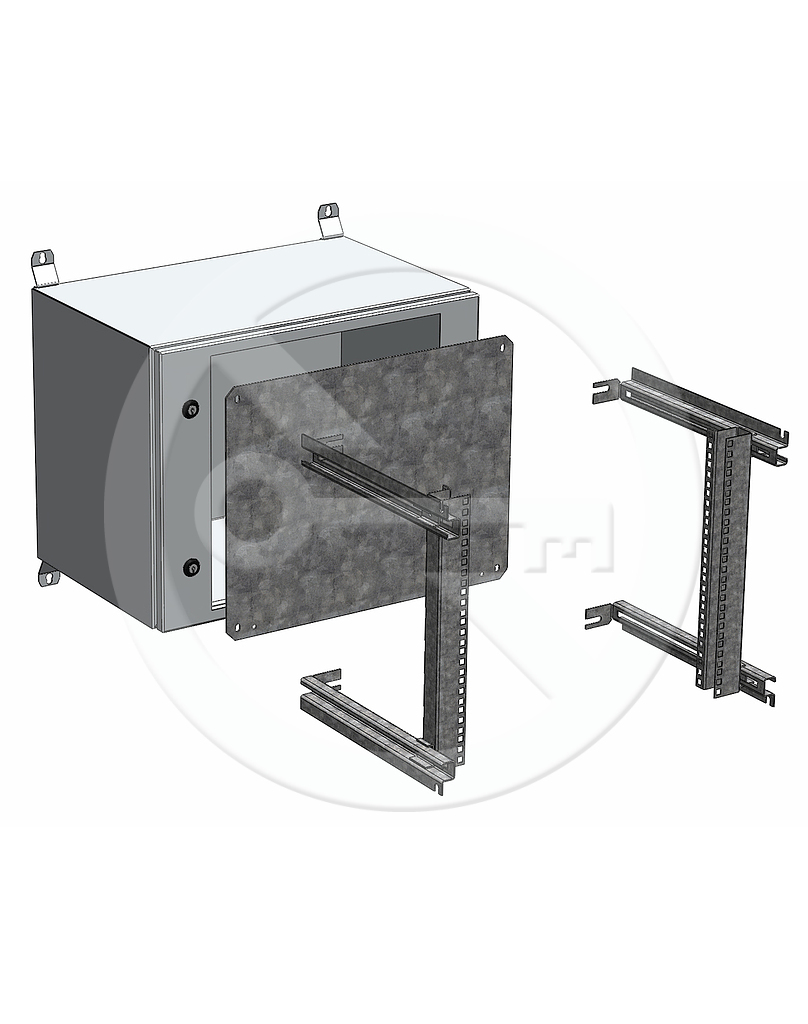 - 19“ vertikální lišty a montážní deska, vždy montována v dodávaném rozvaděči.